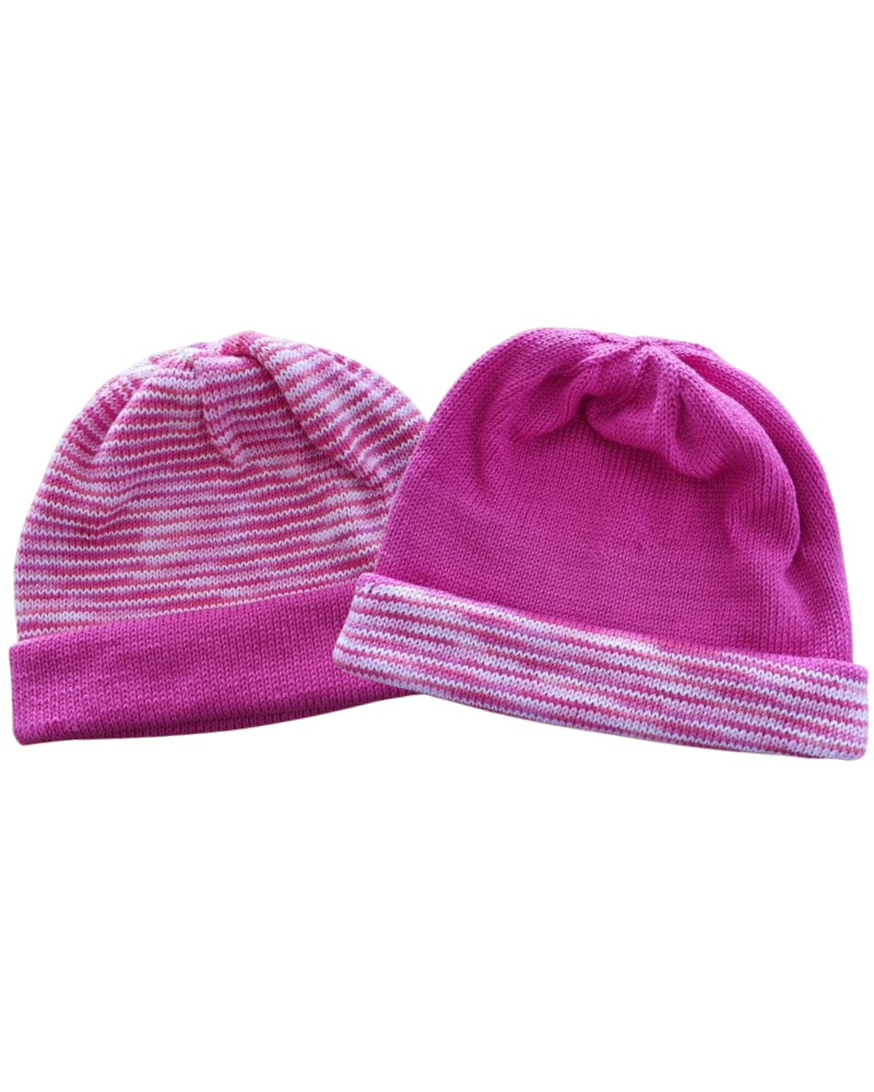 Breipatroon van een mooie omkeerbare muts. Doordat de muts 2 lagen heeft, is hij echt lekker warm. De muts wordt gebreid op een rondbreinaald.